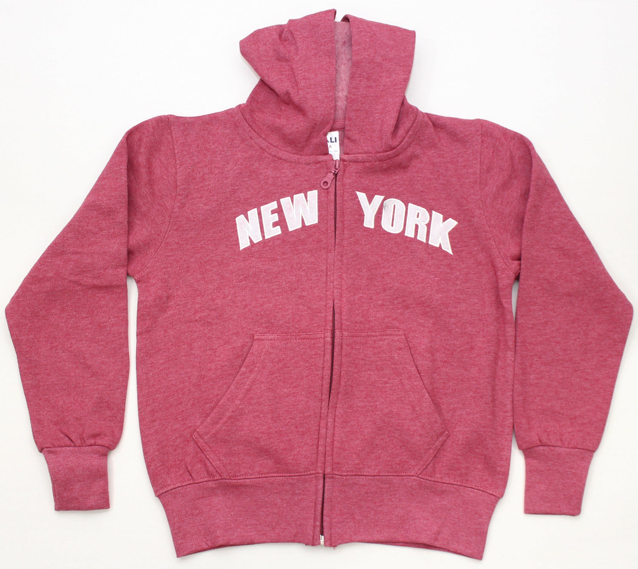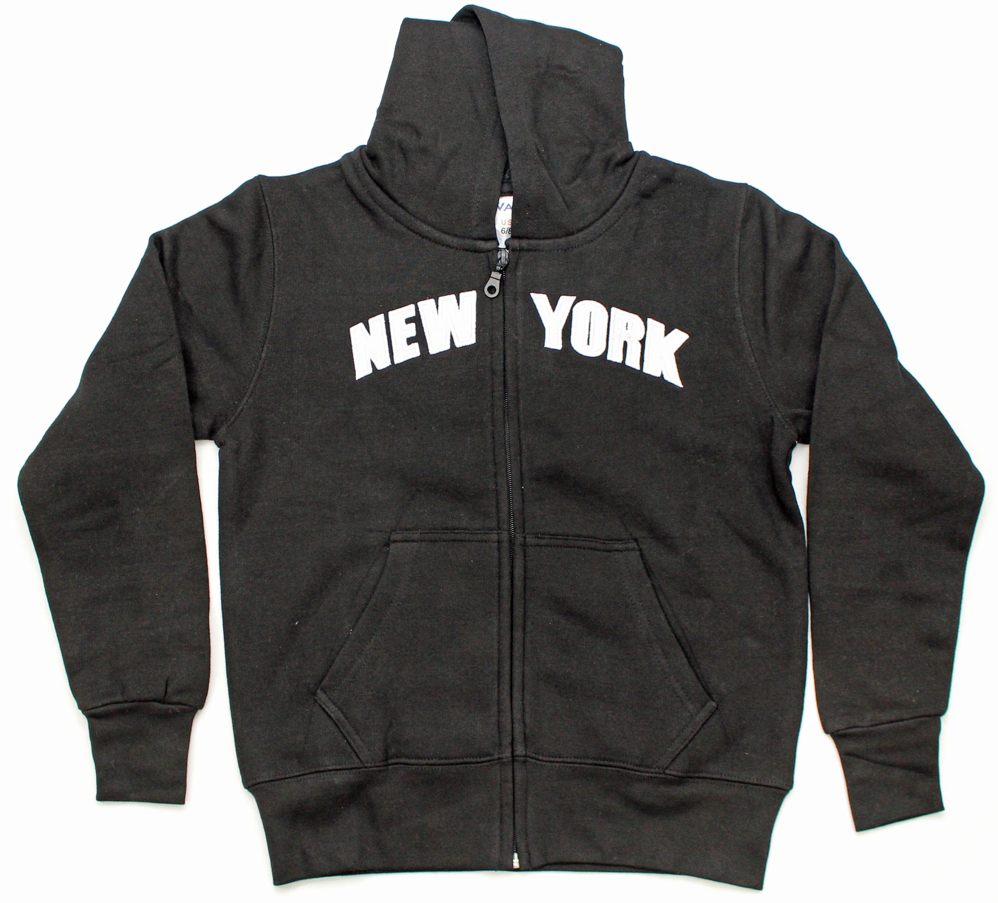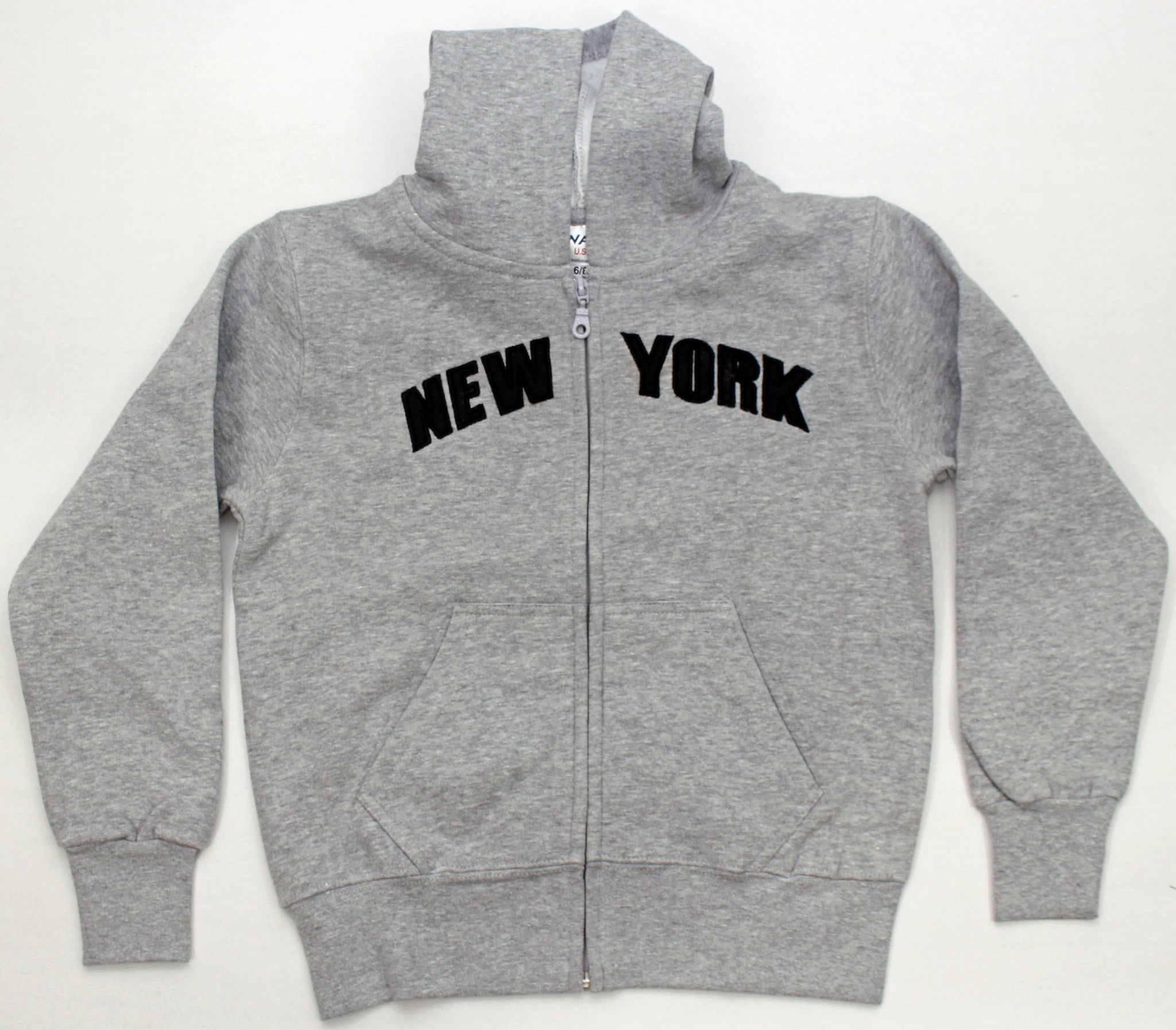 Kid’s Embroidered Zipper Hoodies. This zipper hoodie features “NEW YORK” Embroidered on the front. Drawstring Hood and two pockets on the front.