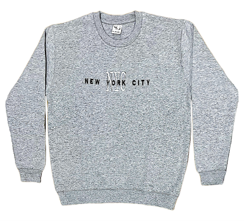 Embroidered Sweat-Shirt. This soft Sweat-Shirt features NEW YORK CITY NYC embroidered on the center front. Having Rib Cuffs and Bottom Band for enhanced stretch .