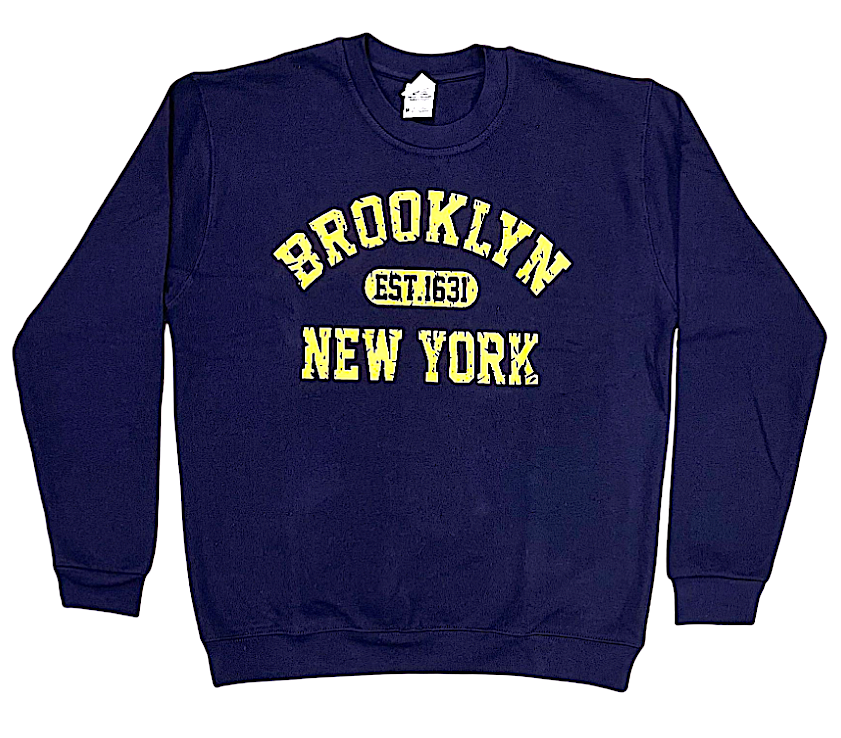 Classic Crew Neck Screen printed Sweat-Shirts. This designer Sweat-Shirt features "BROOKLYN EST.1631 NEW YORK" Screen Printed on the center front. It's very soft and comfortable to wear. Having Rib Cuffs and Bottom Band for enhanced stretch and recovery. It inside has Fleece fabric that keeps warm. A wide variety of Colors and Sizes are available.